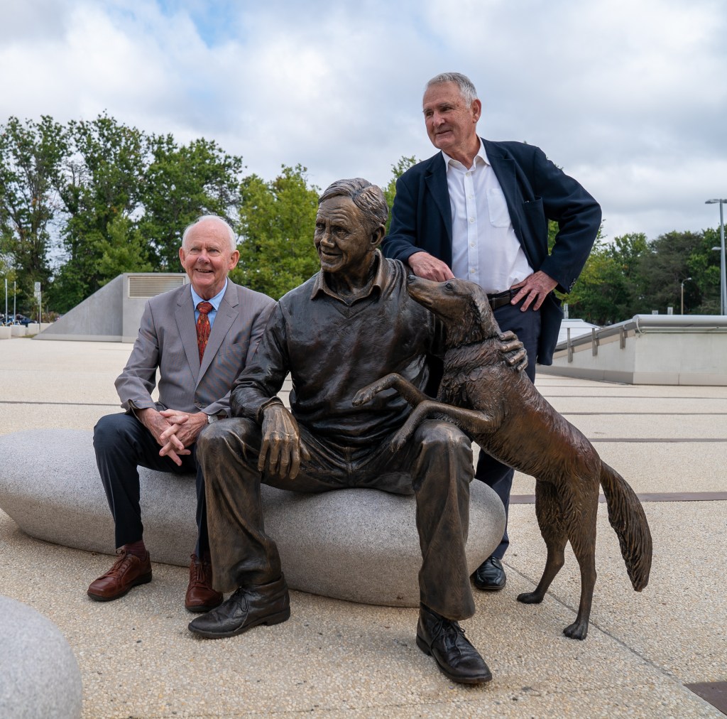 Sir John’s sons, Michael (seated) and Robin (standing) Gorton who, with their families, attended the official unveiling of the sculpture in Canberra on Wednesday 10 March 2021.