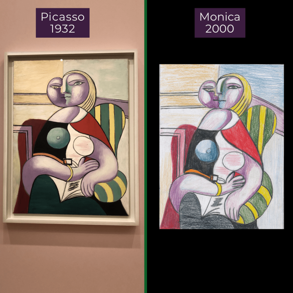 Here is a drawing Monica did from her art studies at Narrahbundah college. Her subject was Picasso. She finally got to see his artwork in real life.