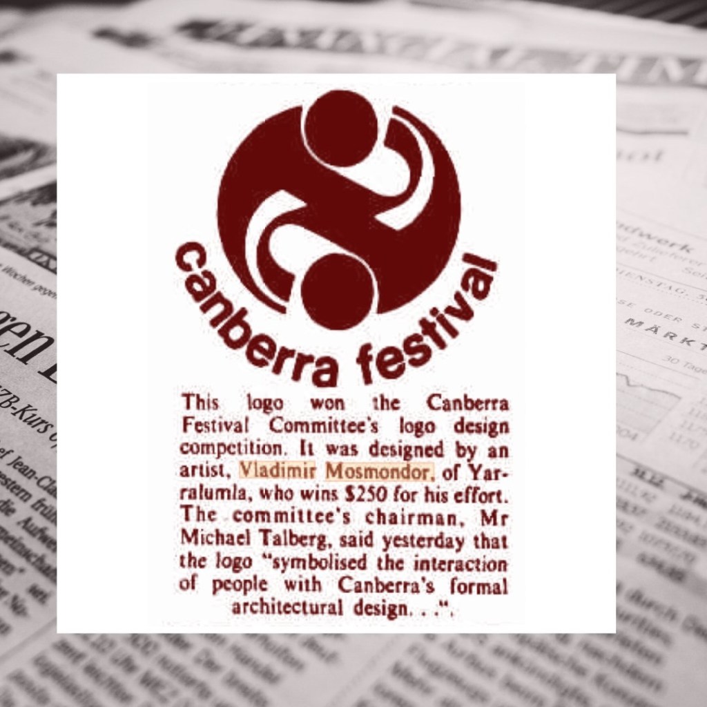Here is Vlad Mosmondor’s winning ‘Canberra Festival’ logo design competition in the Canberra Times, Sat 1 Dec 1979.
