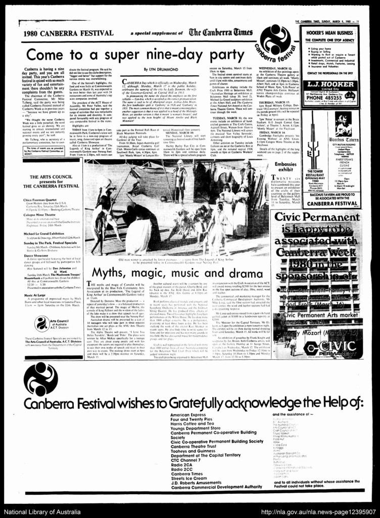 Below is the article from the Canberra Times, image from the National Library Australia. (1980 Canberra Festival special) – Sunday March 9, 1980.