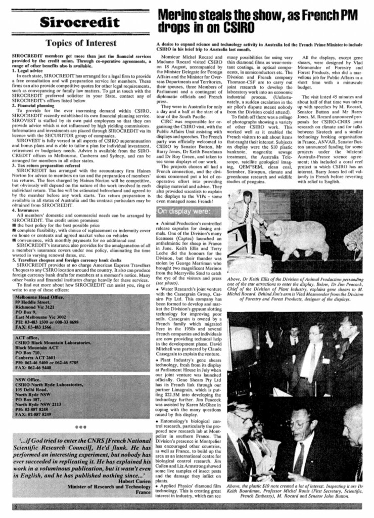 A desire to expand science and technology activity in Australia led the French Prime Minister to include CSIRO in his brief trip to Australia last month.