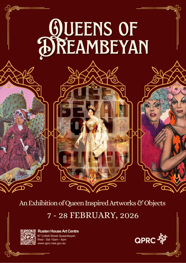 The exhibition nods to Queanbeyan’s alter ego, ‘Dreambeyan’, inviting audiences into a playful and dreamlike realm that reimagines what it means to be a ‘Queen’.